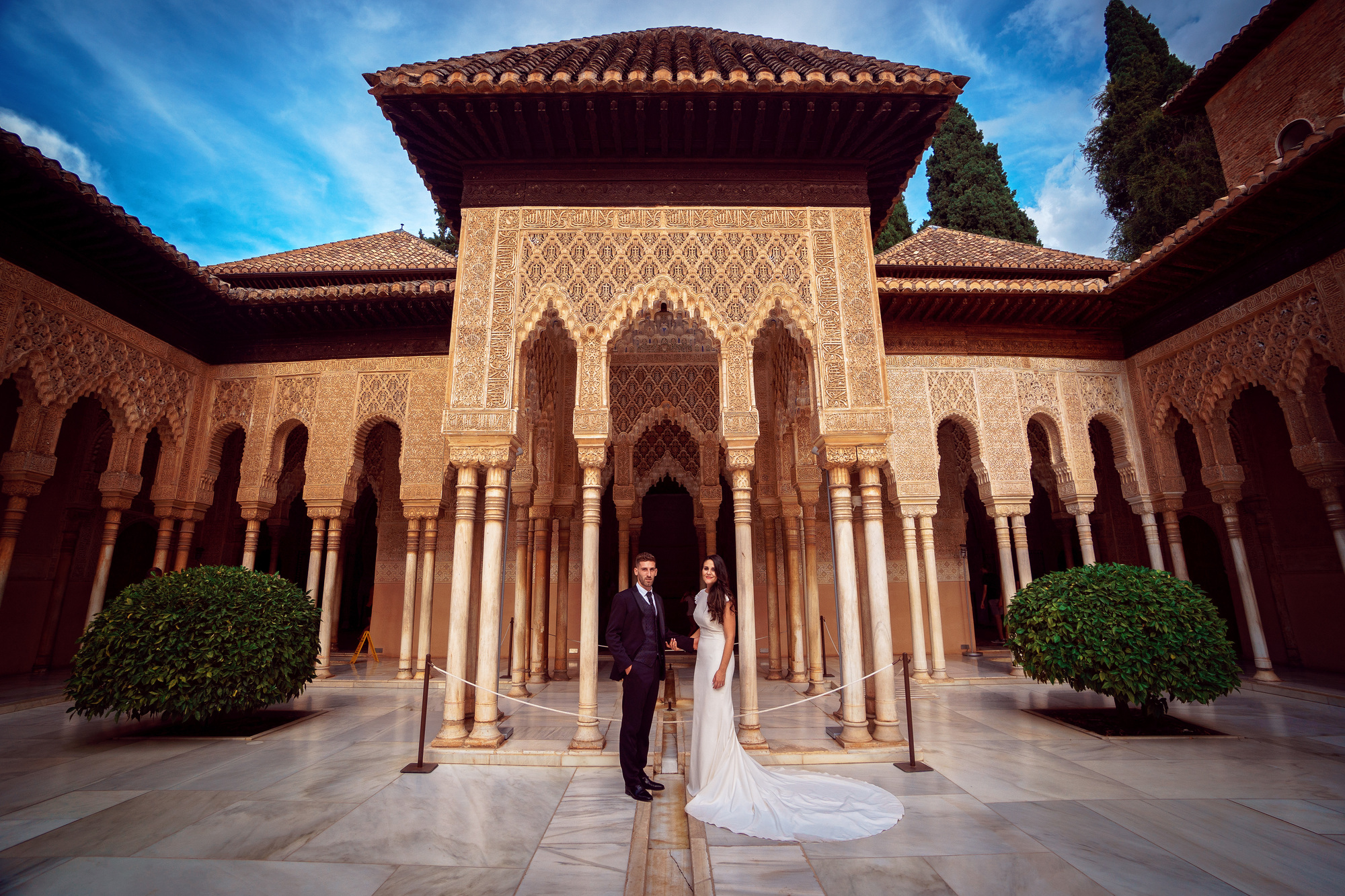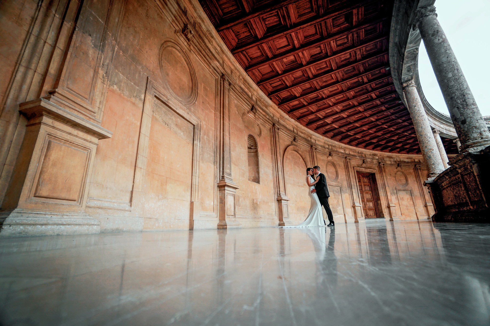 Beautiful romantic couple at a wedding in Alhambra. Alhambra wedding ceremony.