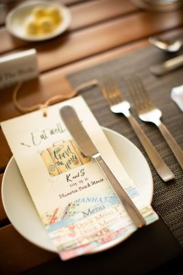 もしゲスト様へのプチプレゼントをお考えであれば、ダイヤモンドヘッドのイラストをいれたバックにいれて渡したり、お揃いのTシャツをつくったり、するのも楽しそう!メニューカードにもそんなデザインがあったら素敵ですよね!